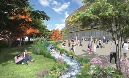 场馆周围建设了可以让民众亲近的空间与散步的步道,让东京市民在奥运会结束之后,仍能有效使用场馆空间,享受大自然。