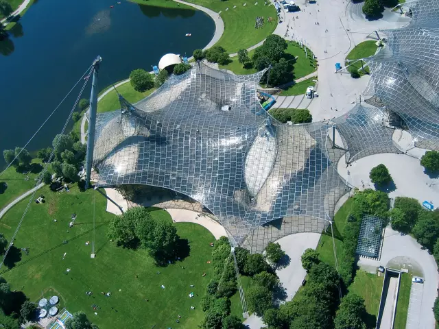 1972年在德国慕尼黑举办的奥运会,场馆设计创造性使用了一种革命性的轻型拉膜结构,设计由2015年获得普利兹克建筑奖项的德国建筑师弗雷·奥托(Frei Otto)和甘特·拜尼施(Günter Behnisch)共同主持。