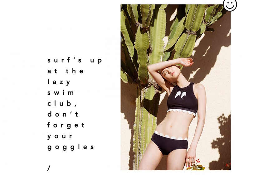 英国时装品牌Lazy Oaf一向都以搞怪著称,连泳衣也不例外。新推出的泳衣套用各种动物和水果的为印花,而分体泳衣还被设计成小美人鱼的样式。很多中国女孩都没有勇气穿比基尼,但荷叶边泳衣又太过土,所以在保守和性感之间,也可以做个有趣的人。