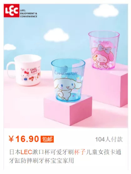 在淘宝网上,LEC还出售三丽鸥角色水杯,售价16.9元。