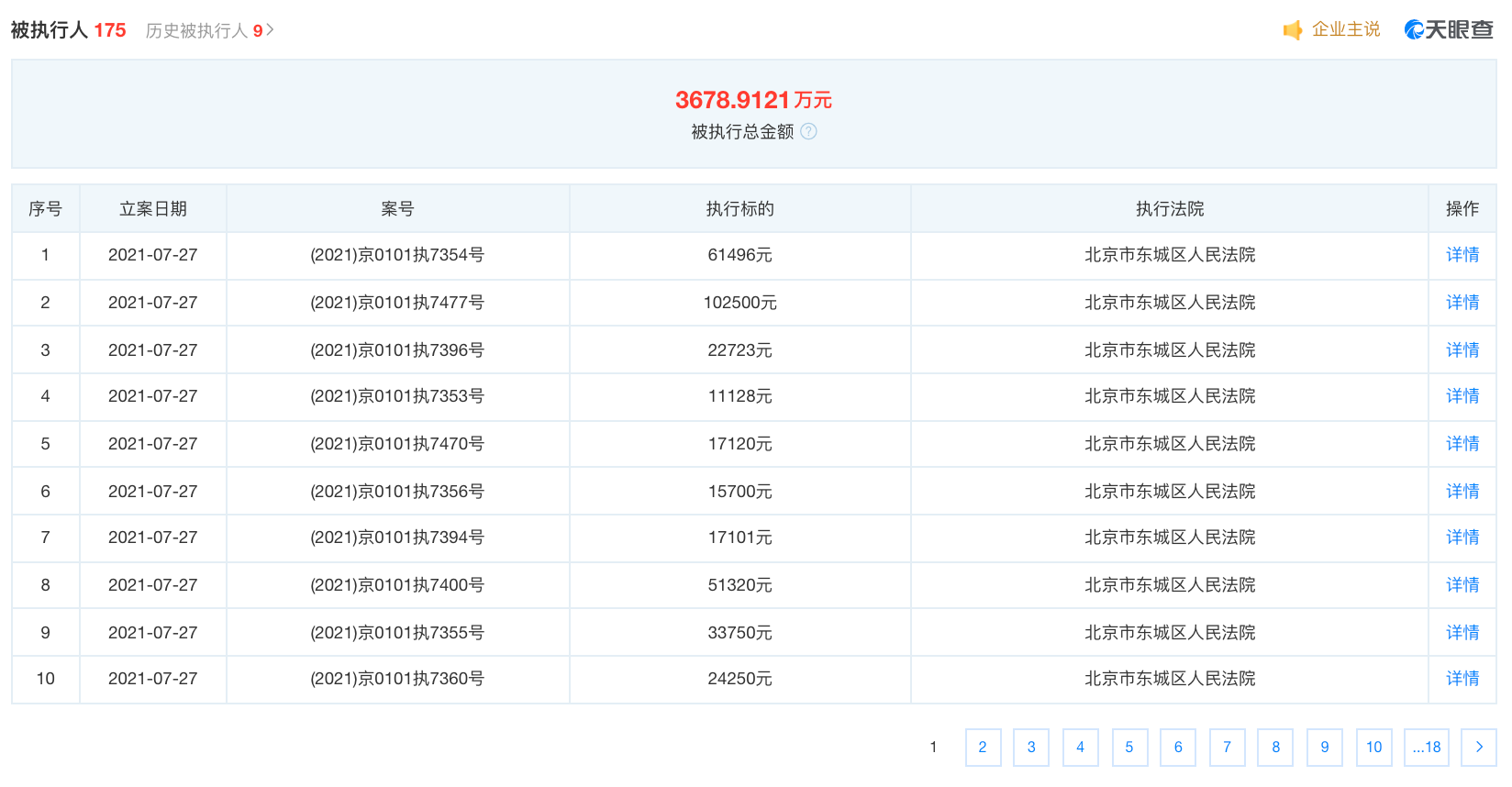 据天眼查APP显示,7月份以来,蛋壳公寓关联公司紫梧桐(北京)资产管理有限公司已新增百余条被执行人信息,执行法院包括北京市东城区人民法院、北京市门头沟区人民法院等,被执行标的千元至千万元不等。截至目前,该公司被执行总金额超3600万元。