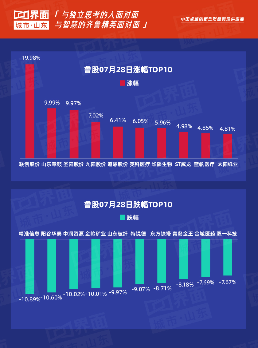 受大盘影响,7月28日,山东省内沪深股票有59只个股上涨,186只下跌,联创股份领涨。
