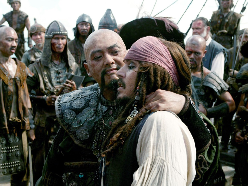 同样悲催的还有《加勒比海盗3》,周润发耗费了大量时间化特效妆,结果他的戏份被国内审查给删了大部分。