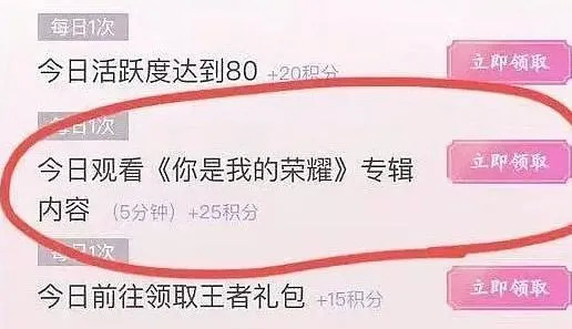 像此次的《你是我的荣耀》,便由于大量的游戏联动内容,被部分网友调侃为“王者荣耀宣传片”。剧集开播后,《王者荣耀》在准备了配套皮肤福利的同时,还在获取皮肤任务中推出了收看《你是我的荣耀》专辑内容特殊任务。