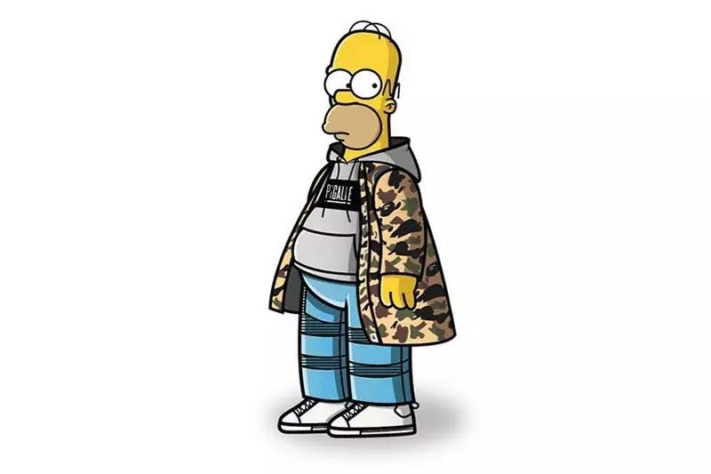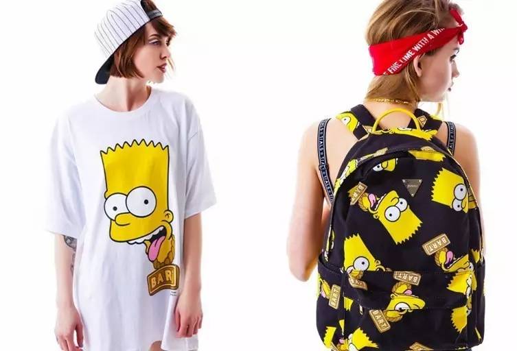 爸爸Homer和儿子Bart的建树主要在潮流界,和他们有染的潮牌很多,从衣服、鞋子、帽子到滑板全方位361°地赚钱。