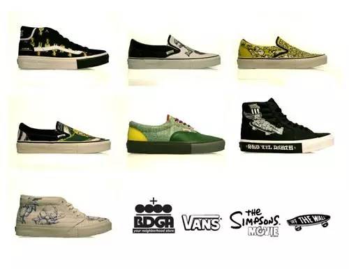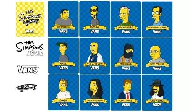 最爱交朋友的Vans也向这家人抛出了橄榄枝,他们曾经联合12位有名的艺术家推出过一系列波鞋,同时还把这些艺术家也都画成了辛普森。