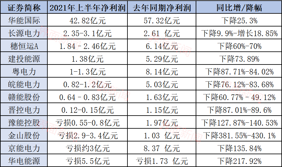 据界面新闻统计,截至7月29日,华能国际(600011.SH)、豫能控股(001896.SZ)、华电能源(600726.SH)等12家上市火电企业公布了半年度业绩,其中5家亏损,其余净利也大幅收窄。