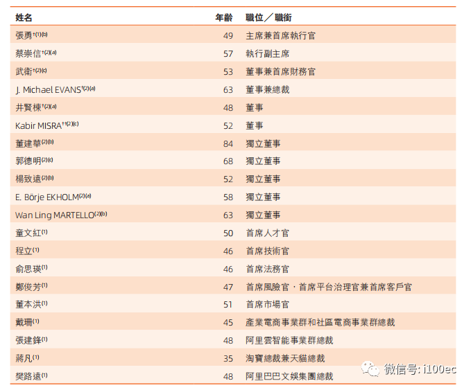 当前,阿里巴巴董事局主席、CEO为张勇,阿里董事局副主席为蔡崇信,武卫为董事、CFO,J. Michael EVANS为董事、总裁。