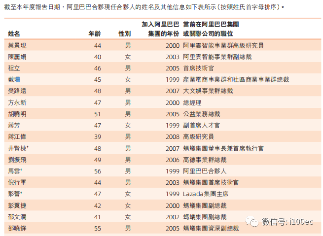 现任合伙人包括:马云、蔡景现、陈丽娟、程立、戴珊、樊路远、方永新、胡晓明、蒋芳、蒋江伟、井贤栋、刘振飞等38人。