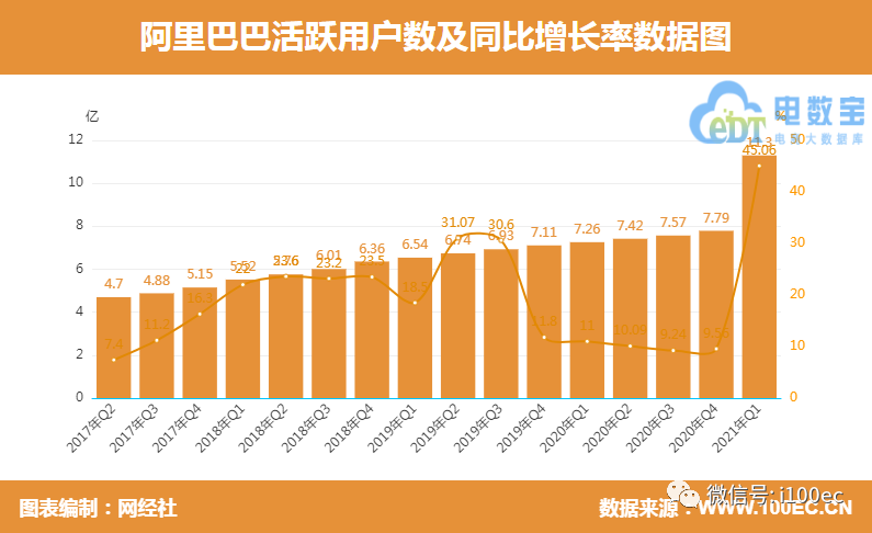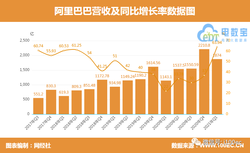 以下为网经社(100EC.CN)带来阿里巴巴2021财年主要财报要点: