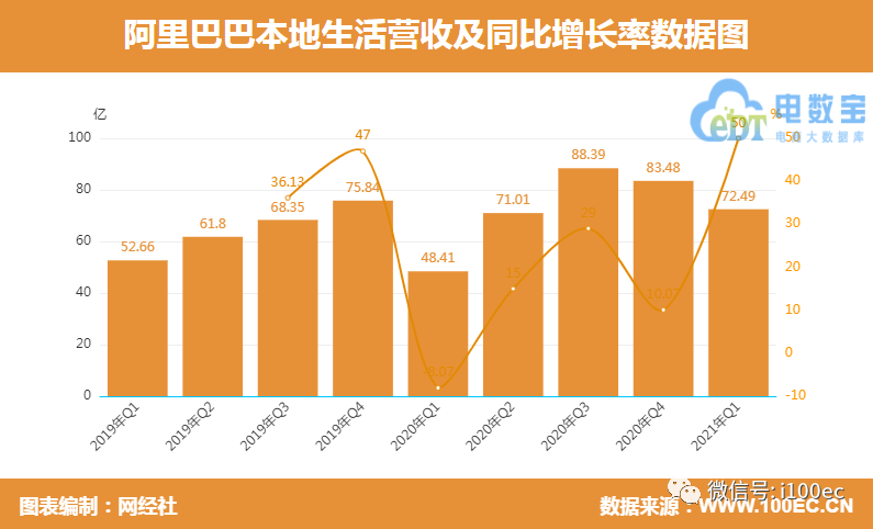 2021财年,本地生活服务营收315.37亿元,同比增长24%。