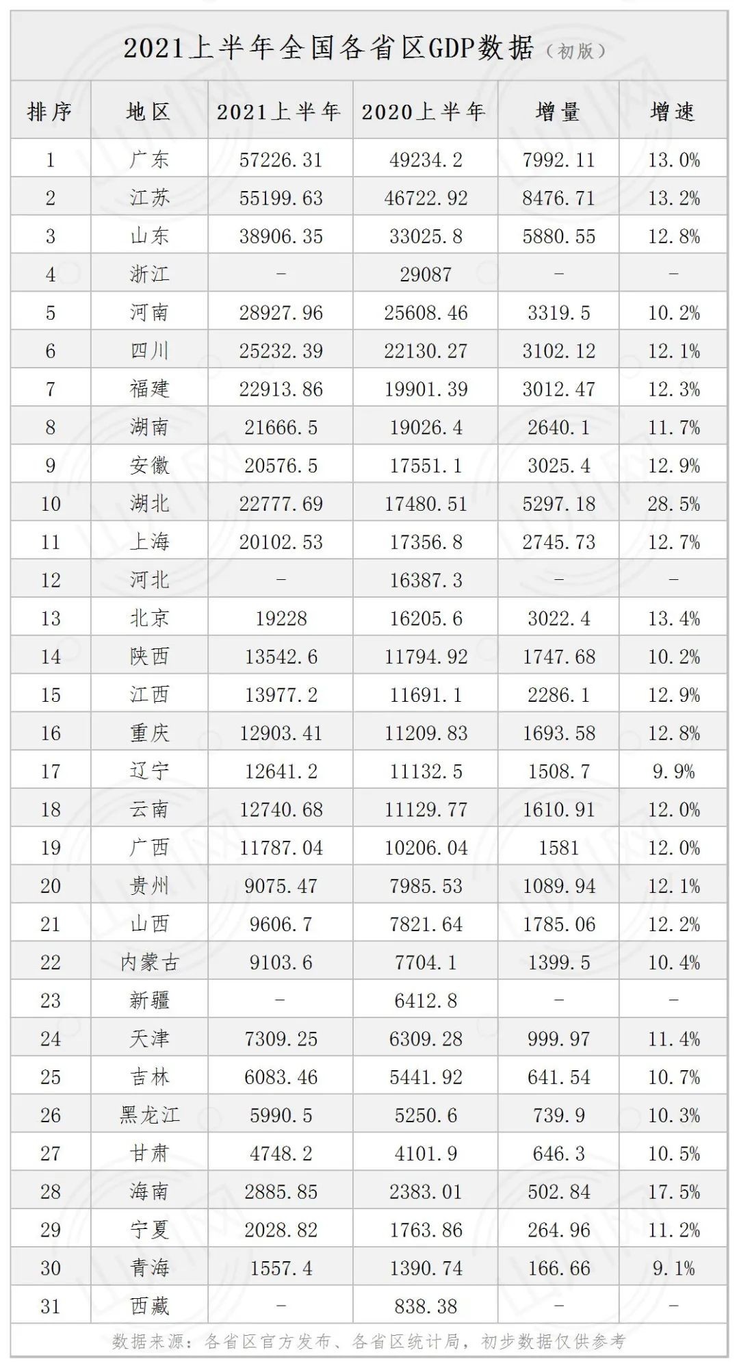 近日,各省纷纷发布2021年上半年经济运行情况,这份“中报”表现如何?