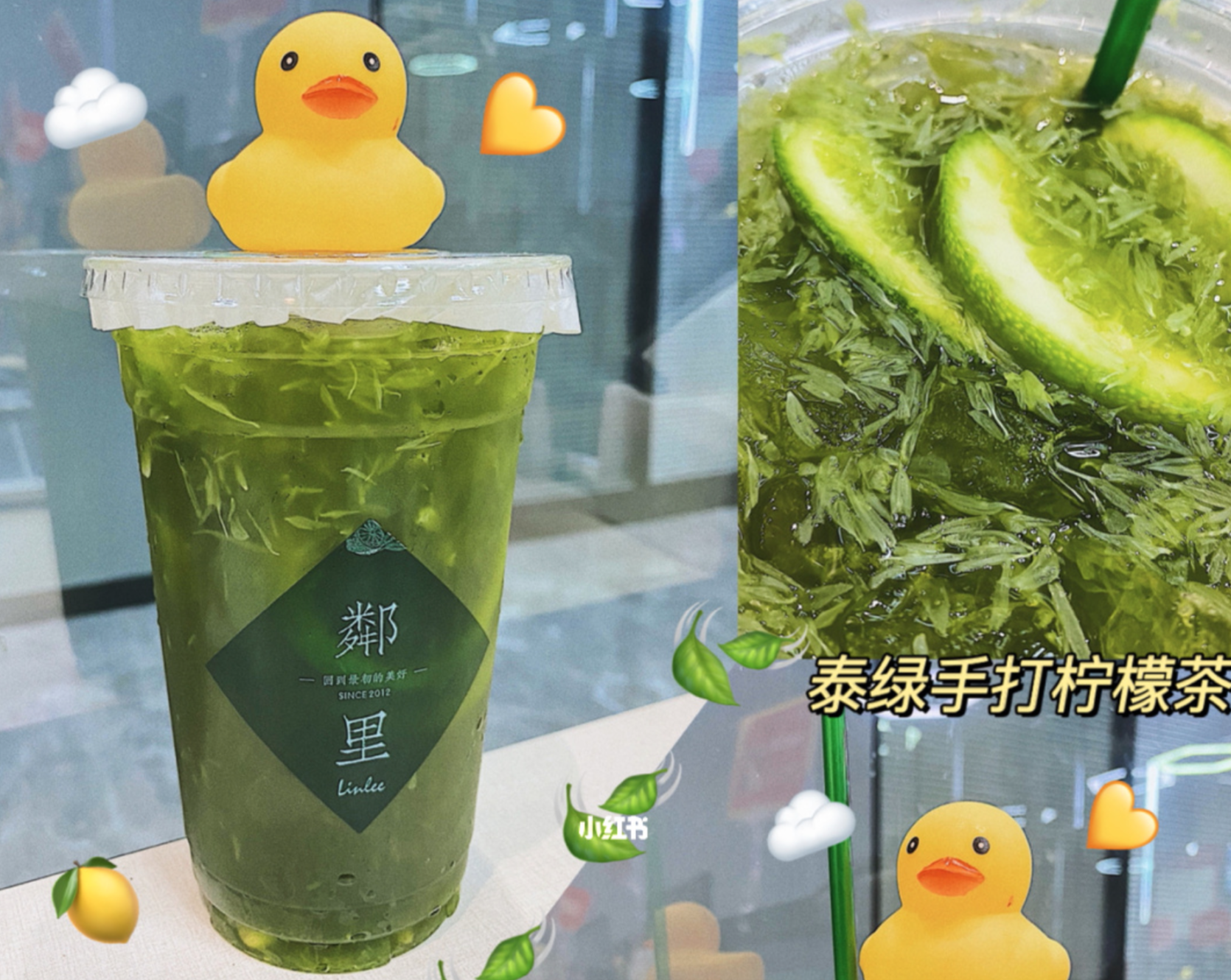 LINLEE的产品包括手打柠檬茶、现萃系列、手摇冰茶和奶茶。其中最受欢迎的是此前推出的泰绿手打柠檬茶,由于味道像是风油精,视觉上的绿给人新鲜感,再加上随茶附赠的小黄鸭,很快成为爆款。在小红书上,经常看到“原谅绿泰凉柠檬茶+小黄鸭”的拍照套餐。