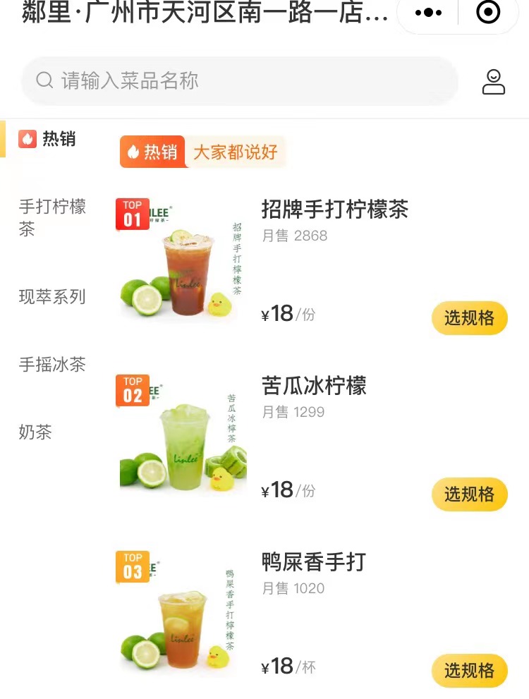不止LINLEE,从美团外卖平台可以看到,包括TANING挞柠、丘大叔柠檬茶等强调手打柠檬茶的品牌,在广州市场的部分门店月销都表现不错,均超过了3000单。