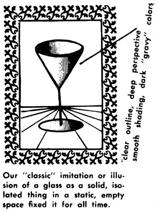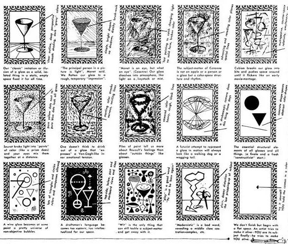 Ad Reinhardt 是活跃于纽约的艺术家,属于抽象表现流派。这次他用一个杯子做范例,创作了 15 张图,以此说明西方艺术发展的 15 个阶段,算是相当权威的一种解释。