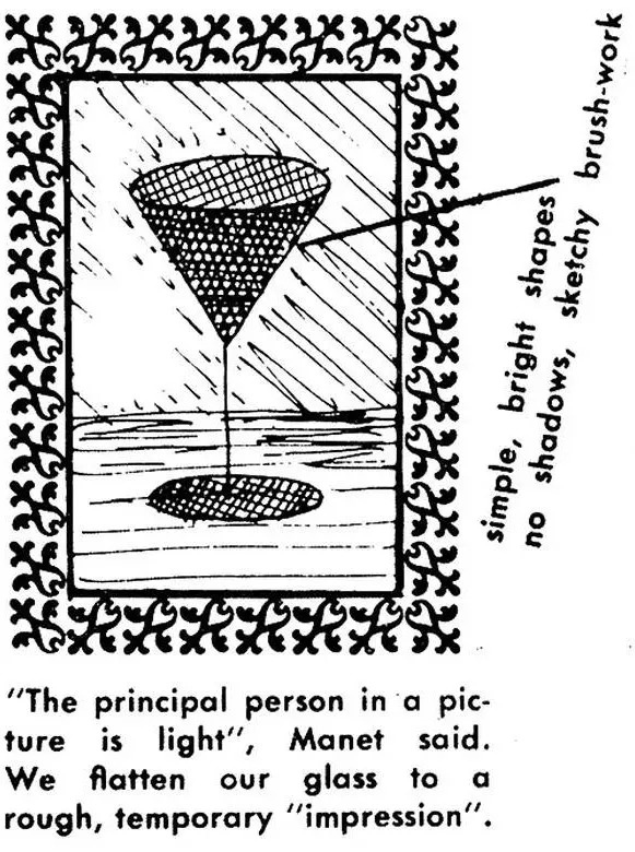 主旨:“光线是一幅画中最重要的人”,马奈说。我们将杯子打平成一个粗略的、临时的“印象”。