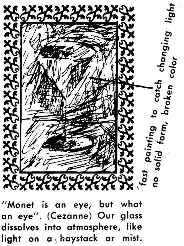 主旨:“莫奈是一个眼睛,但这是多么出色的眼睛”。塞尚这么说。杯子融化到氛围中,就像光打在干草堆或是迷雾中。