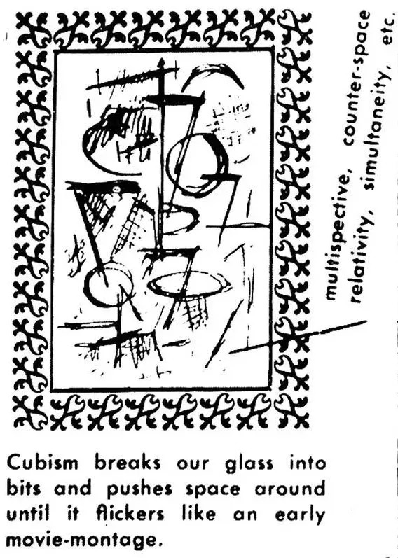 主旨:立体主义把我们的杯子打碎,将空间推到四周,直到它像早期的电影蒙太奇一样,闪闪发光。