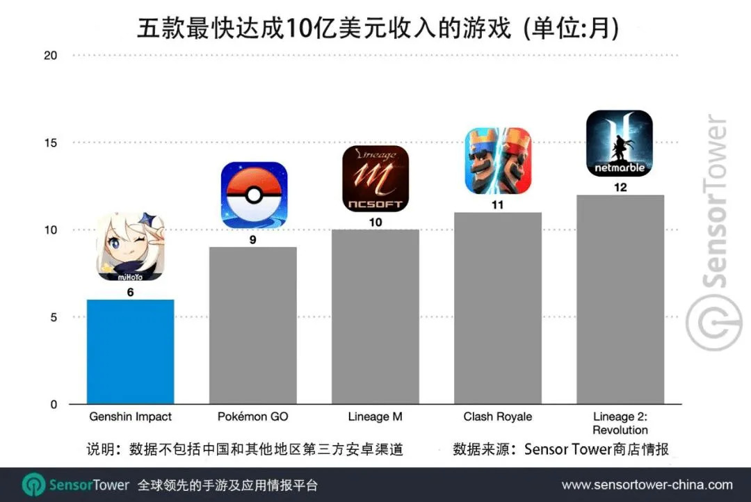 今年4月,Sensor Tower发布数据,米哈游旗下的《原神》在不到半年时间内,收入突破了10亿美元,成为史上最快达成10亿美元收入的产品,其中在中国区的iOS收入达到了3.02亿美元。