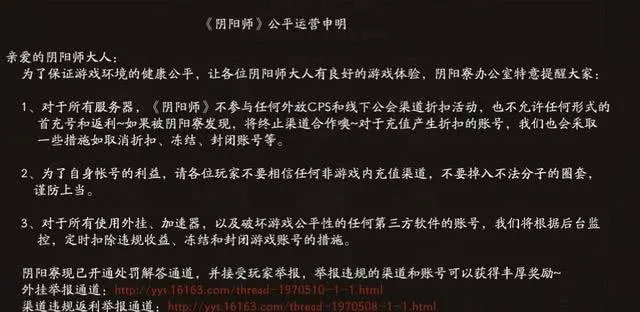 某游戏声明:不参与任何外放CPS和公会渠道折扣活动,不允许任何形式首充号