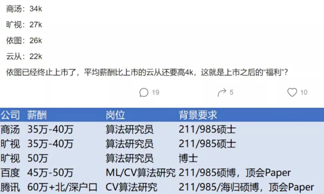AI 行业公司艰难的上市历程,探索未知智能前景的难度系数,都促使行业的泡沫快速出清,AI人才动辄百万千万的高薪神话,也不复存在。