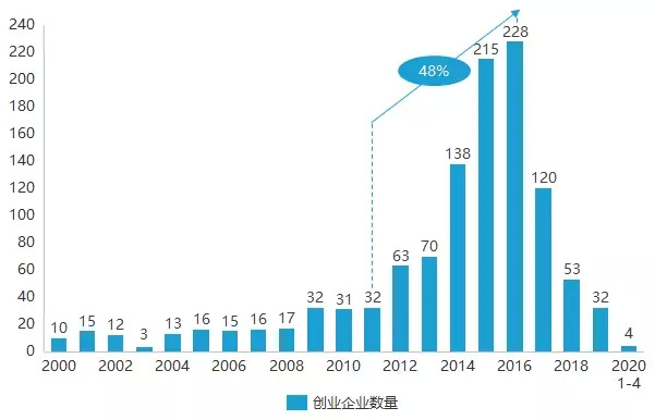 亿欧智库:2000-2020年4月中国人工智能企业新创公司数量
