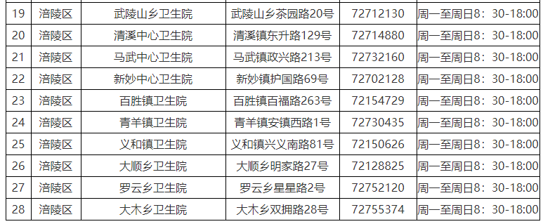 5.人和社区卫生服务中心(人和街道仁华路100号),联系电话:86787375