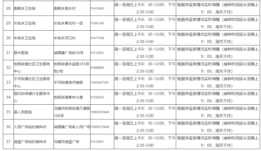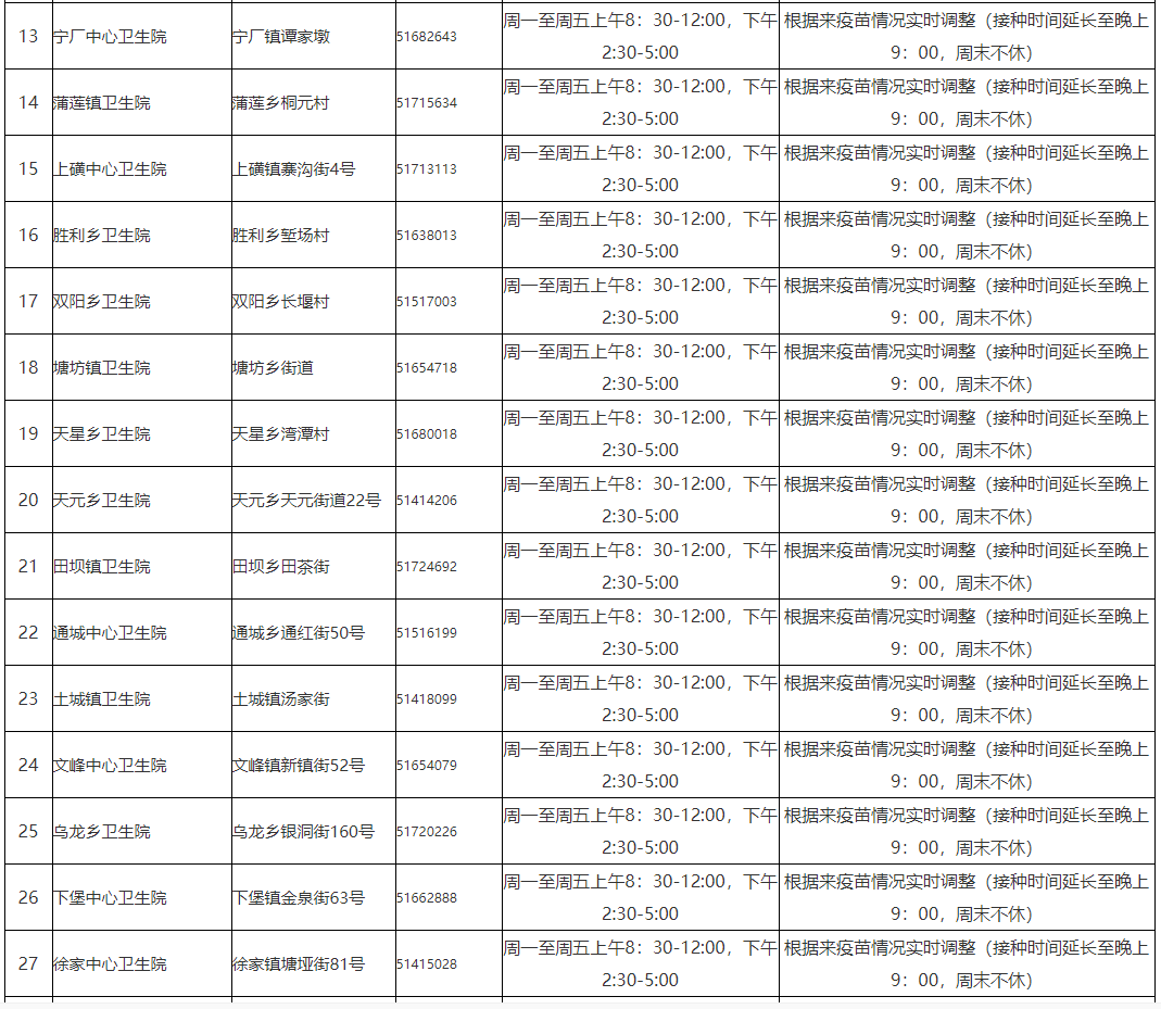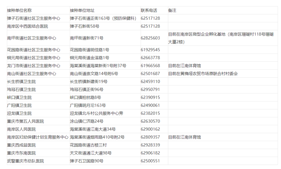 注:通知来源于各区县官方微信,地址来源于各区县卫健委官方发布,具体通知请以各区县或学校具体安排为准。