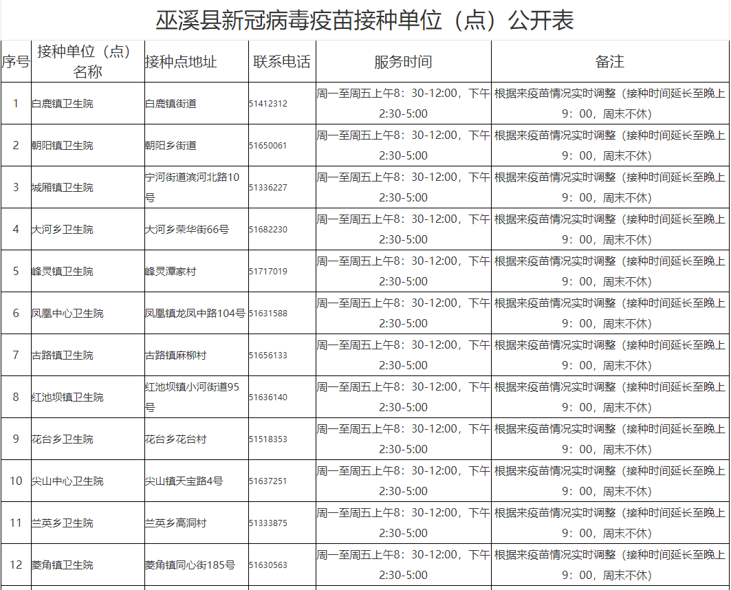 根据统一部署,巫溪县8月1日起分阶段为12-17岁年龄段人群,提供新冠疫苗接种服务。
