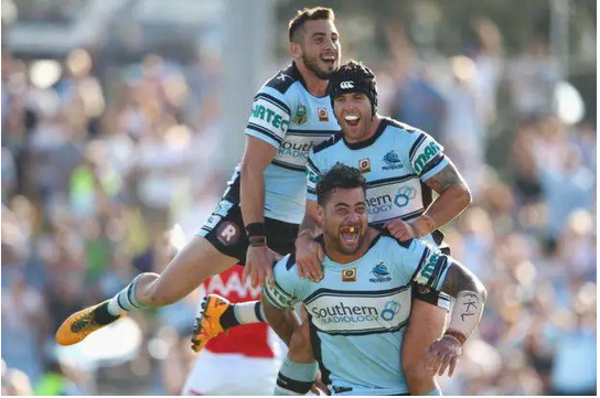 Cornulla Sharks橄榄球俱乐部球员在庆祝,他们中有人训练偷懒了吗?