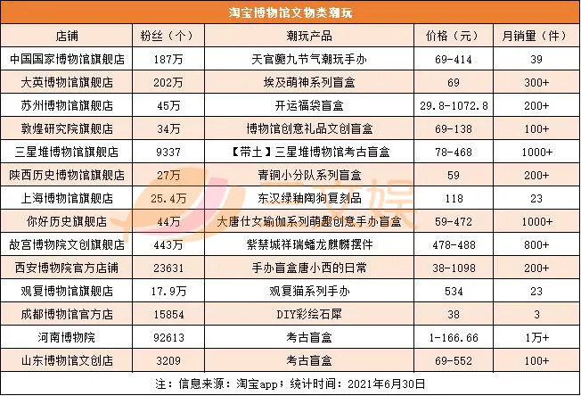 其实不然。三文娱以“文物”“博物馆""博物院”为关键词,分别在造点新货、淘宝手机App检索,也能从众筹金额、店铺粉丝数及文物潮玩销量三个角度,看到文物潮玩在消费市场的积极反馈。