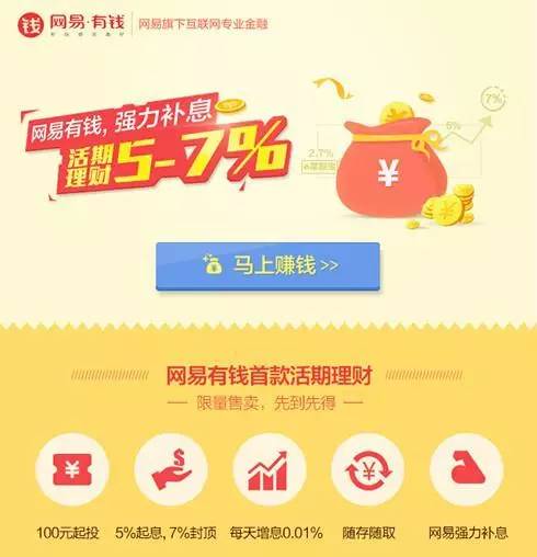 1、网易有钱直接将这款“货基型活期理财产品”一步补贴至5%。