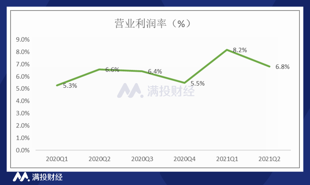 二季度,亚马逊的营业利润率为6.8%,较一季度的8.2%下降了1.4%。