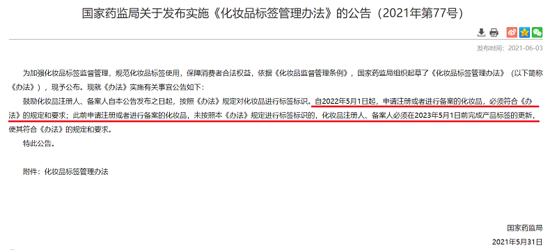 中贸合规中心:《化妆品标识管理规定》已经在走废止流程,建议可以根据国家药监局2021年第77号公告要求,标注新的产品执行的标准号,普通化妆品即标注备案号。