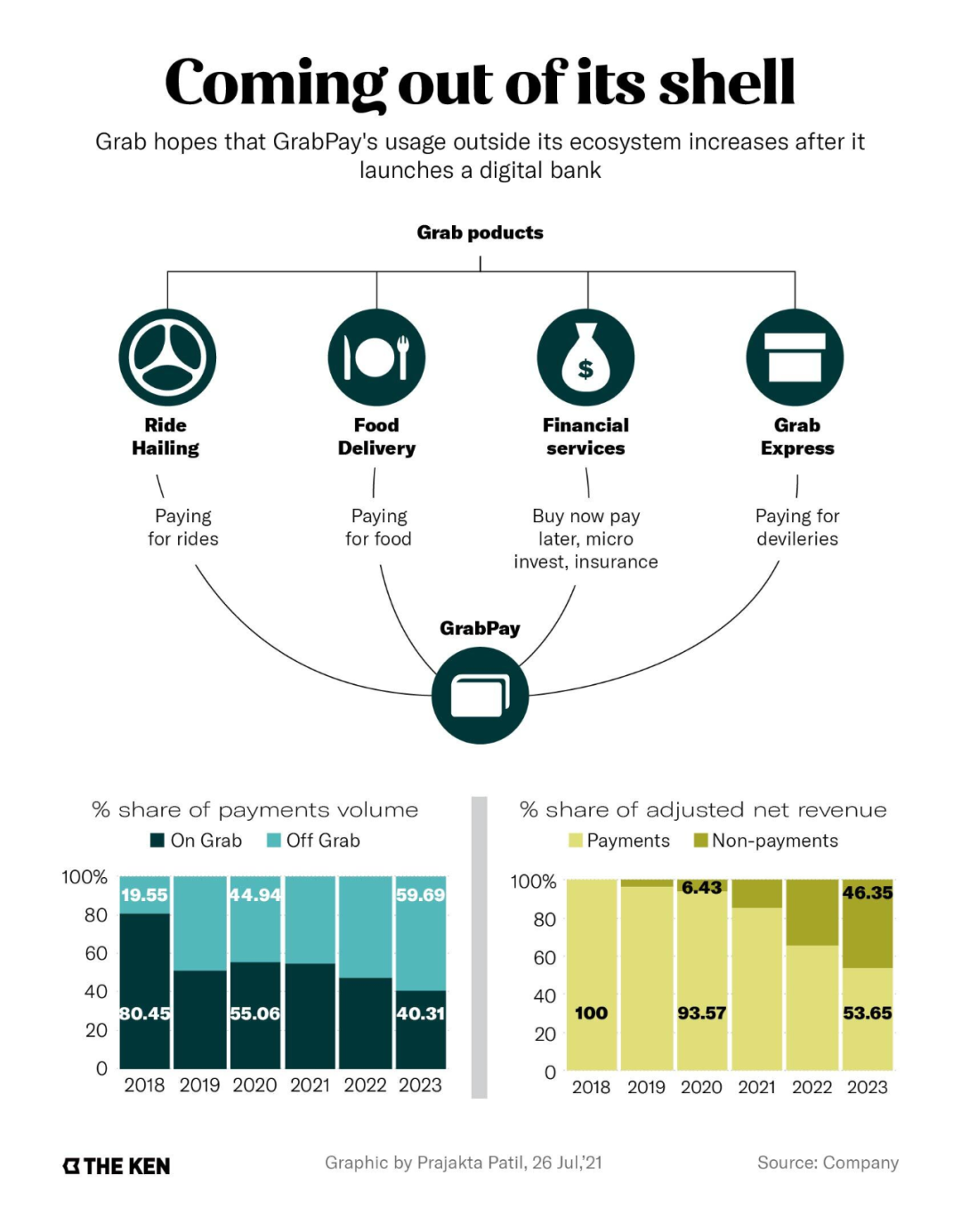 然而,Grab 还需要确保其钱包和支付基础设施不仅仅局限于其生态系统内的服务,其中包括送货和移动性。Grab的投资者介绍,2018年,虽然通过GrabPay的支付有80%仅限于Grab生态系统,但预计到2023年,这一比例将减少到40%。