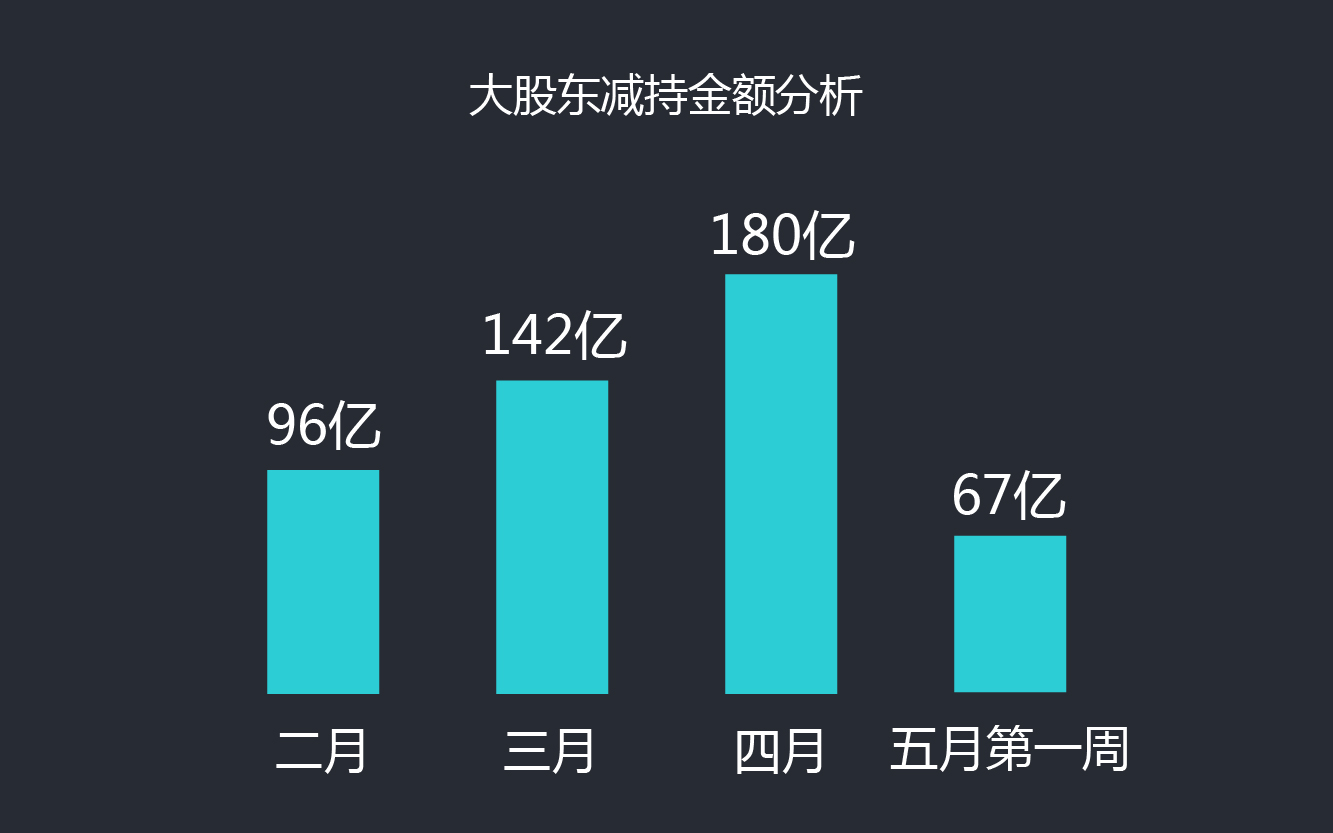 大股东缺钱想套现怎么办?卖点公司股票就ok,so easy。据统计,今年3月这帮缺钱的大股东减持金额为142亿元,相比之前2月的96亿,有很大幅度的上升。4月份,减持金额更增加至180亿元。而进入5月以来的第一个交易周,大股东减持金额已高达67亿元。是什么原因,让大股东这么不乐意持有上市公司的股票呢?