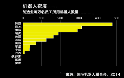 中国技术转型仍有很长的路要走,目前中国每1万名制造业工人只有36部机器人,相比之下德国为292部,日本为314部,韩国则为478部。不过,中国已经在改变全球制造业的面貌。在这一过程中,中国正在引发更大层面的疑问:新兴经济体还能不能指望依靠传统的发展道路(自18世纪英国工业革命以来发达国家曾依赖过的道路)致富?抑或机器人将会接手曾经让数亿人摆脱贫困的许多职位?