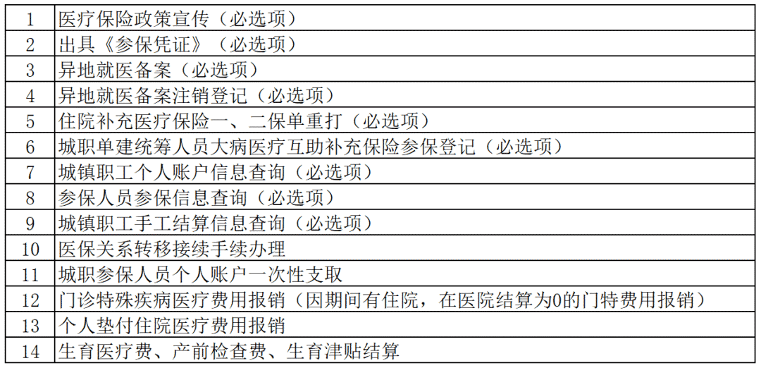 ◆注:第1-9项为每个医保服务工作站点所必须提供的必选项,其余事项由各医保服务工作站点根据自身条件自选办理。