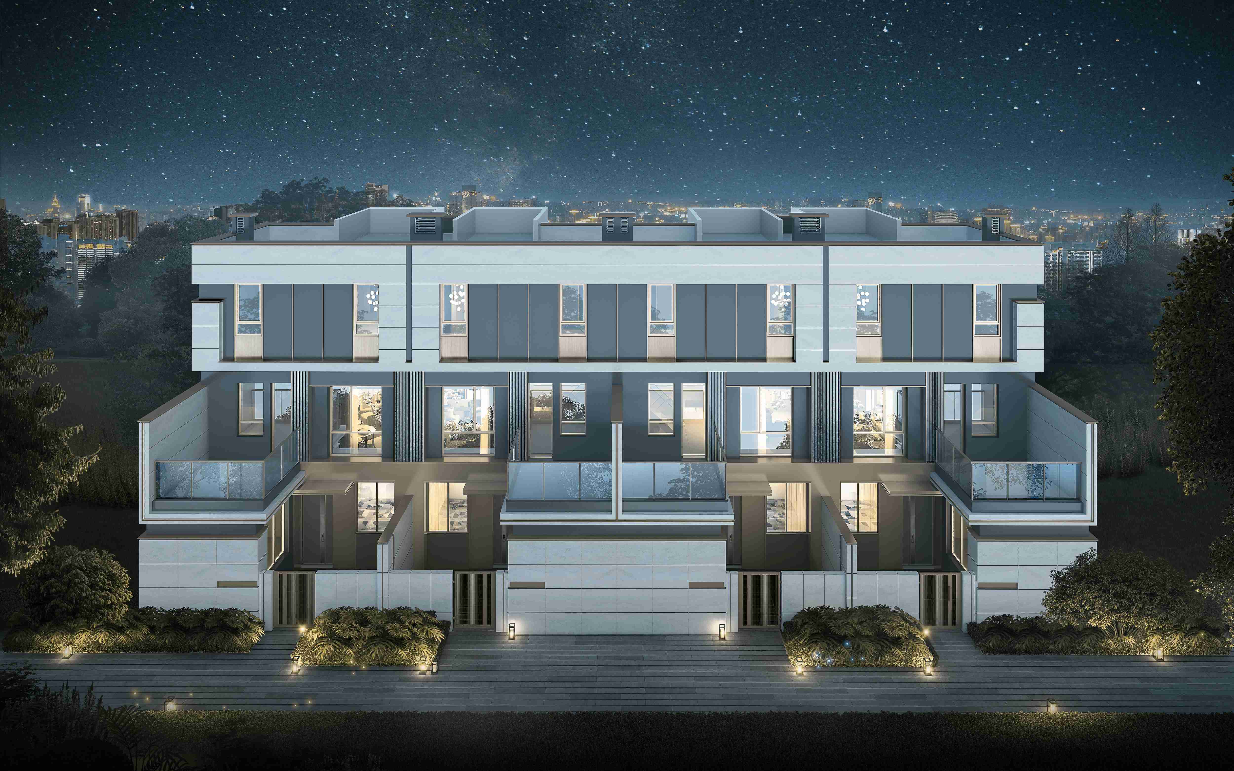 如在空间规划上,璞园首创了“方厅型”产品,节约走廊面积,让空间功能实现最大化;同时设计了约7米的天穹客厅挑高,让别墅不再是每层完全隔开的传统户型。而城市花园则通过退台式的结构设计,使上叠拥有合计约63㎡的层层露台空间,同时在窗墙设计上,以约0.64的超大窗墙比和约7.2m的阔绰阳台尺度,让别墅空间及视野更加开阔。