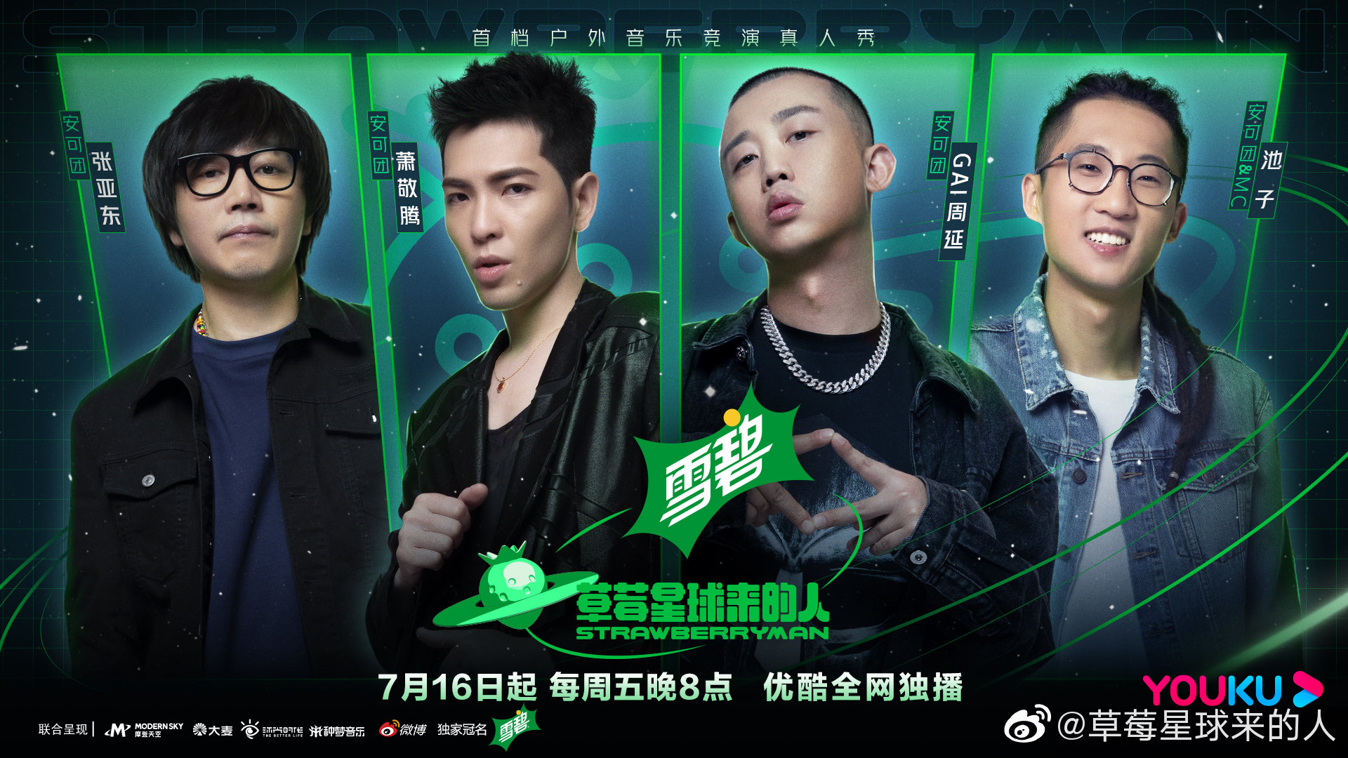 今年夏天没有《乐队的夏天》,目前已经上线开播的音乐竞演类节目只有《草莓星球来的人》,由优酷、摩登天空、阿里大麦、沐光时代四家联合推出。