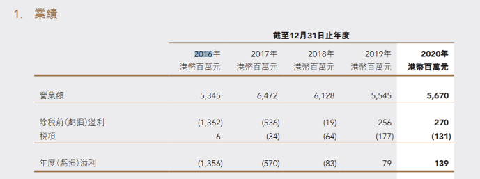 瑞安建业问题出在盈利能力方面,2016-2020年,企业营业收入从53.45亿港元升至64.72亿港元,2019年降至55.45亿后2020年微微回升至56.70亿。但不管营收如何变动,企业净利润都不怎么给力,五年内企业税后利润分别为-13.56亿港元、-5.70亿港元、-0.83亿港元、0.79亿港元及1.39亿港元。