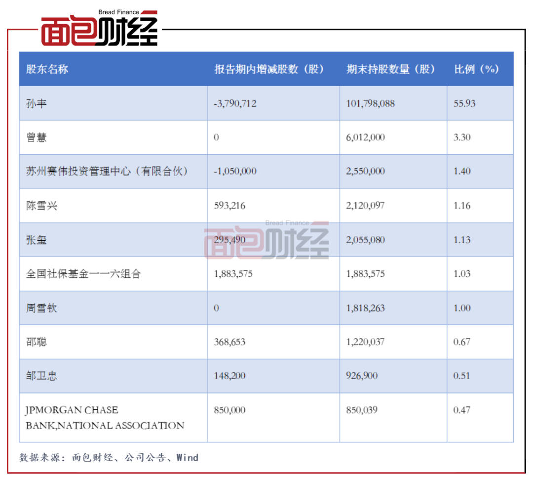 此外,报告期间,苏州赛伟投资管理中心(有限合伙)与控股股东孙丰、曾慧解除一致行动人关系,并通过大宗交易合计减持公司股份105万股。