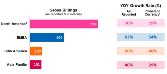 收入方面,本季度营收13.22亿美元,同比去年增长54%,即使与未受到疫情影响的2019年同期相比,仍然有9%的增长幅度。