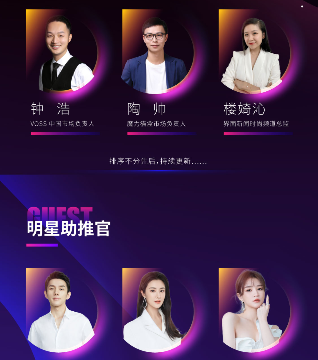 第四届界面新消费盛典明星助推官阵容已于近日正式官宣:电商主播李佳琦;电商主播 薇娅;宸帆董事长、头部电商主播雪梨Cherie(朱宸慧);世界拳王、奥运冠军、邹市明搏击健身中心联合创始人邹市明;明星助推官乃万NINEONE#,从全新的视角洞悉消费新趋势。