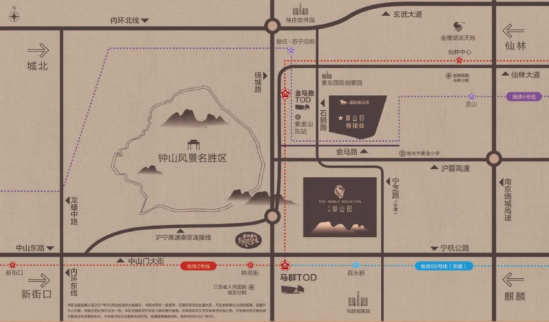 项目位于城东马群板块紫金山东麓片区,距离马群地铁站约1.8公里,目前地铁2号线和有轨电车已经开通,还未在建的宁句城际、规划中的S6、8号线等多条线路都将从这里经过。并且马群枢纽可以直通绕城高速,区位条件非常好。