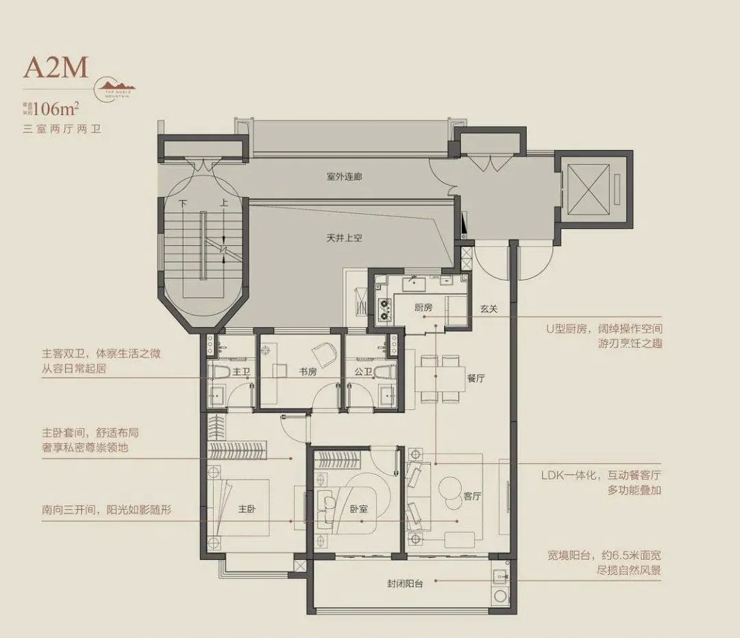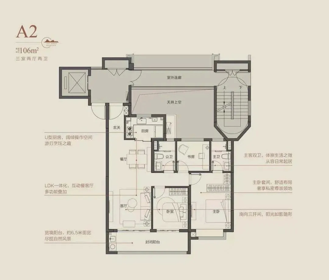 建筑面积约106㎡户型图(三室两厅两卫)↓