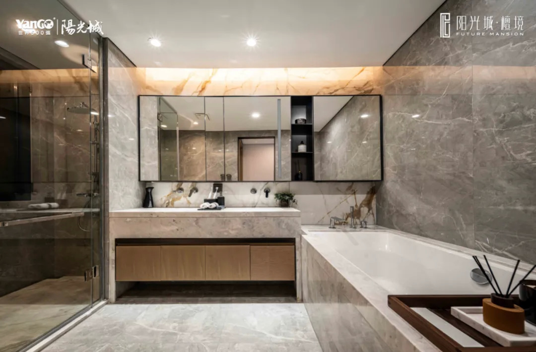阳光城·檀境精工匠造建面约195&175㎡光幕大平层,整体采用国际灰白调奢雅风,低饱和度莫兰迪色系质感十足。