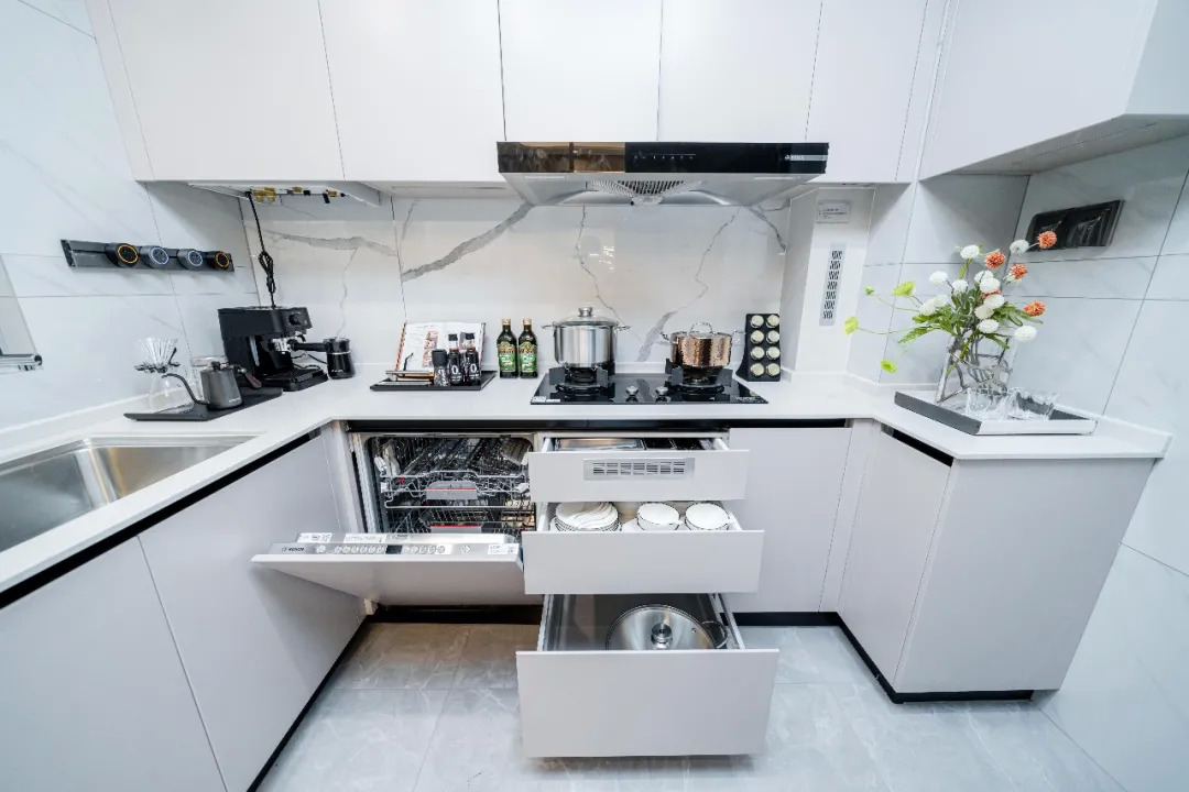 厨房采用全德系精工博世油烟机及灶具、隐藏式洗碗机;厨具品牌弗兰卡,且配备贴心垃圾处理器,国际大牌全方位配置,成就豪宅品质的集大成之作,带来奢华高品质生活享受。