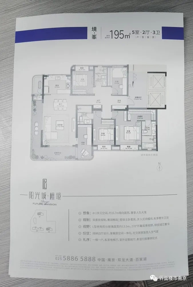 阳光城·檀境项目预计8月开盘,推出148套住宅房源,主力户型为195、175㎡,142㎡,其中有3套顶跃户型建面约275㎡。参照周边部分二手房成交均价约4.5万/㎡,阳光城·檀境自带高配精装升级包,受限价影响,具体价格待定。