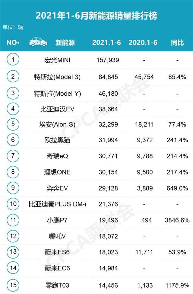从新能源汽车上半年销量排行榜来看,五菱宏光的宏观MINI排名第一,其因低价位和可爱外形受到许多女性消费者喜爱。销量排行第二第三名分别是特斯拉的Model 3和ModelY,而蔚来居于第十三名和第十四名。